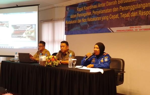 Pangkalpinang - Pemadam Kebakaran Provinsi Kepulauan Bangka Belitung bersinergi dengan damkar kabupaten/kota dalam melaksanakan tugas di daerah berbatasan. Sinergi ditandai dengan digelarnya Rapat Koordinasi Antar Daerah Berbatasan dalam Pencegahan, Penyelamatan dan Penanggulangan Kebakaran dan Non Kebakaran yang Cepat, Tepat dan Responsif di Sun Hotel Pangkalpinang, Senin (30/10/2023).