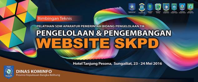 Dalam rangka untuk meningkatkan kompetensi SDM Pengelola Website/Portal SKPD di lingkungan pemerintahan, maka kami mengundang SDM Pengelola Website SKPD untuk hadir dapa acara "Bimbingan Teknis Pengelolaan & Pengembangan Website SKPD" yang akan diadakan dari tanggal 24-25 Mei 2016 di Hotel Tanjung Pesona Sungailiat Bangka.