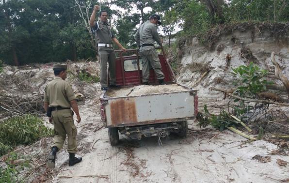 Adapun barang bukti yang berupa mobil pick up berisi pasir ikut diamankan di kantor Satpol PP. Pemilik mobil pun dimintai keterangan dan menandatangani surat pernyataan bermaterai untuk tidak mengulangi perbuatannya.