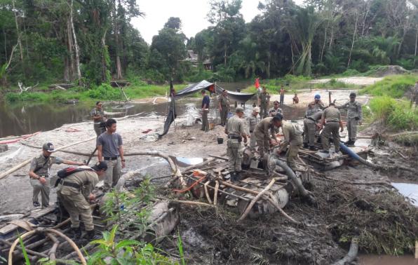 Sebanyak 4 mesin robin, 5 mesin tambang dan 6 pompa TI diamankan. Dua pleton anggota Satpol PP Babel dikerahkan bersama tim dari Polisi Militer (PM).