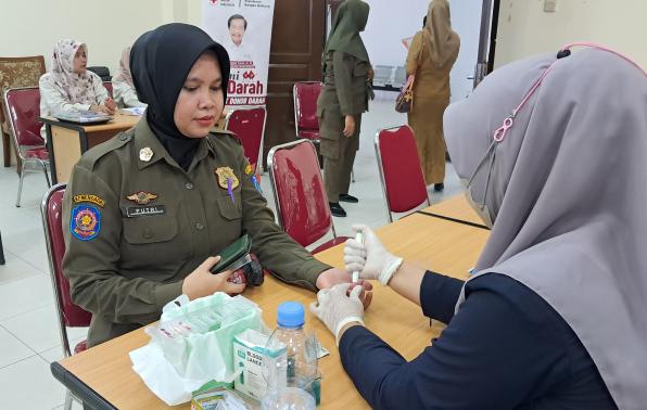 Pangkal Pinang - Dalam rangka Hari Pamong Praja yang diperingati setiap tanggal 8 Setember, Satuan Polisi Pamong Praja Provinsi Kepulauan Bangka Belitung menggelar kegiatan donor darah di Ruang Pertemuan Kantor Satpol PP Provinsi Kepulauan Bangka Belitung, Senin (09/09/2024).