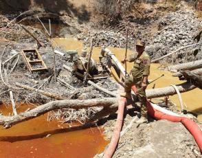 Muntok - Satpol PP Provinsi Kepulauan Bangka Belitung dibawah pimpinan Kasat Pol PP Yamowa Harefa merazia tambang timah ilegal di kawasan konservasi hutan lindung Bukit Menumbing Muntok Bangka Barat, Kamis (22/08/2019). Kali ini Satpol PP Provinsi...